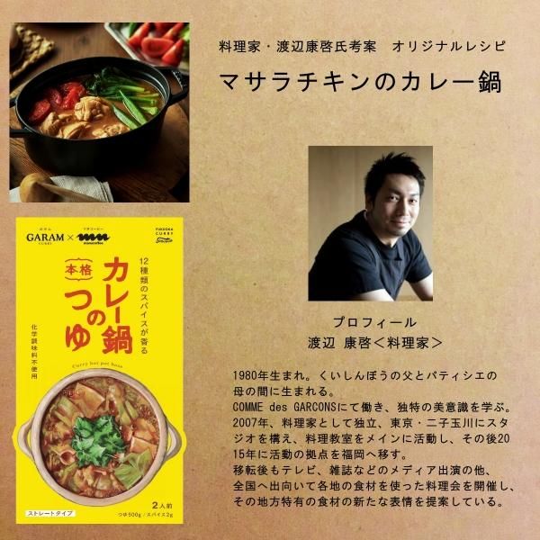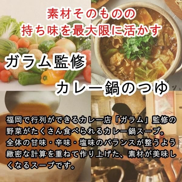 そうして出来上がったのが、野菜が美味しく食べられるこの「カレー鍋のつゆ」です。味の監修は、博多の有名カレー店「GARAM(ガラム)」さんにお願いしました。