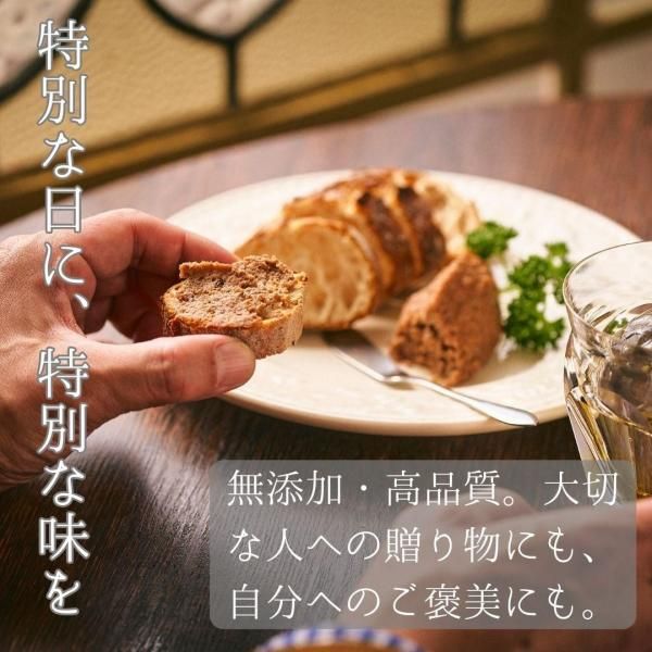 博多和牛を使用し、香味野菜と赤ワインでマリネした後、肉・脂・煮汁を乳化させ、しっとりとした口当たりに仕上げています。