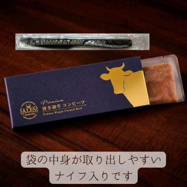 福岡県産の高品質な和牛で、20ヶ月以上かけて丁寧に育てられます。豊かな霜降りと濃厚な旨味が特徴で、世界的にも評価されています。その博多和牛を贅沢に使用したコンビーフをぜひご堪能ください。